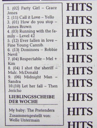 Welle Untermain von mir also deutlich auf „durchhörbar-flott“ einjustiert und mit einem eigenen wöchentlichem „powerplay“ (Hit der Woche) versehen - es wurde „draußen auf der Strasse“ auch allgemein anerkannt und gehört... Meine Handschrift war schon deutlich. Unter den powerplays dann Sachen wie „Wild horses“ von Gino Vanelli (der erste powerplay bei Sendestart) oder „When Smokey sings“ von ABC.....